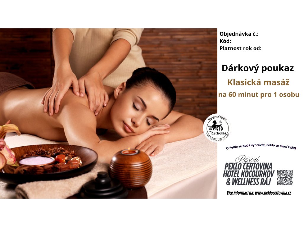 Klasická masáž celého těla pro 1 osobu na 60 minut.